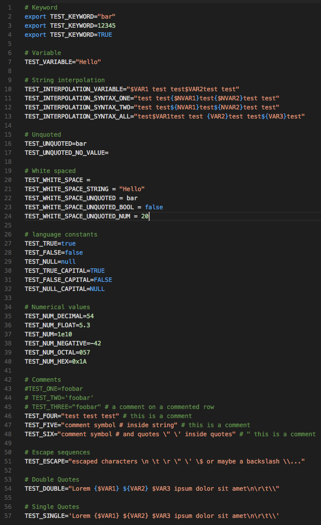 이 확장은 위 이미지와 같이 VSCode에서 .env 파일의 Syntax Highlighting을 지원하게 해줍니다. 특별한 기능이 존재하지는 않지만, 간단하면서도 충분한 기능이죠.